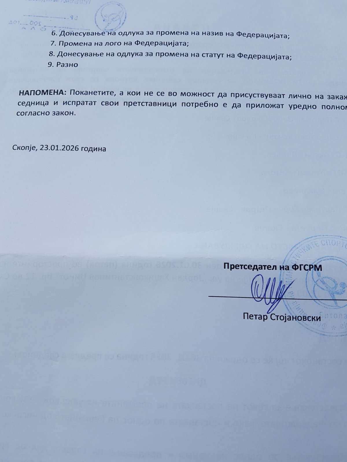 Во јавноста се појавија документи и покани за одржување собранија, потпишани од Петар Стојановски, во својство што не е усогласено со важечките статутарни и правни акти на Федерацијата.